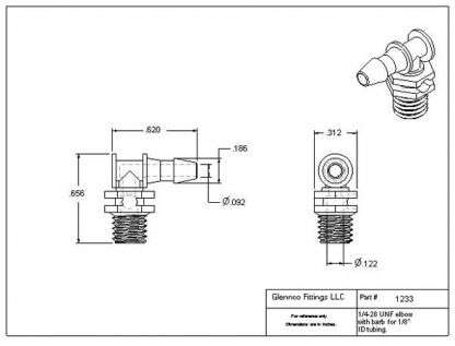 123305 (Threaded Elbows – Thread: 1/4-28 UNF Barb: 1/8″ Material: Polypropylene)